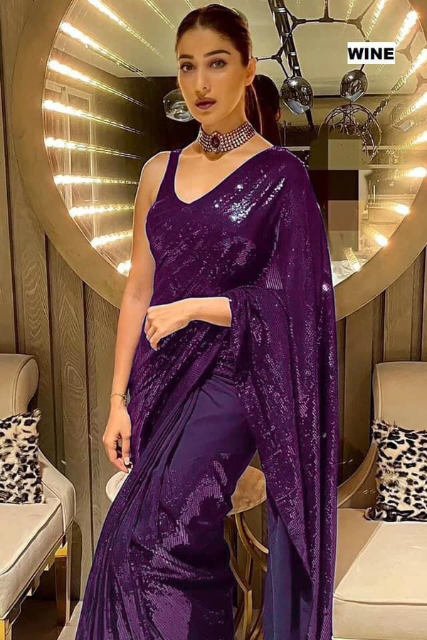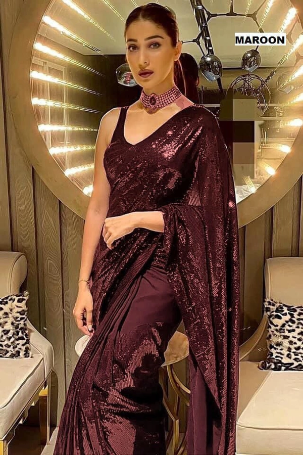 Full Saree Of Georgette With Heavy 5MM Sequence Embrodery Work