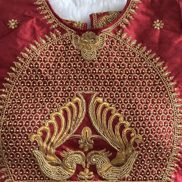 Blouse in nice finished Khatali work( Manggam Work) with coding and Jari work