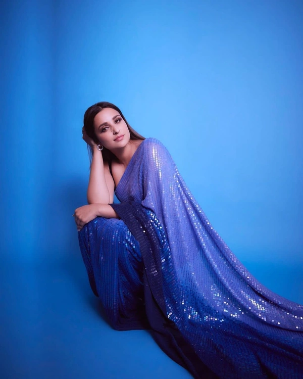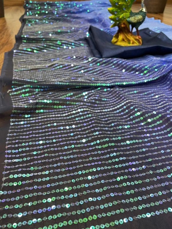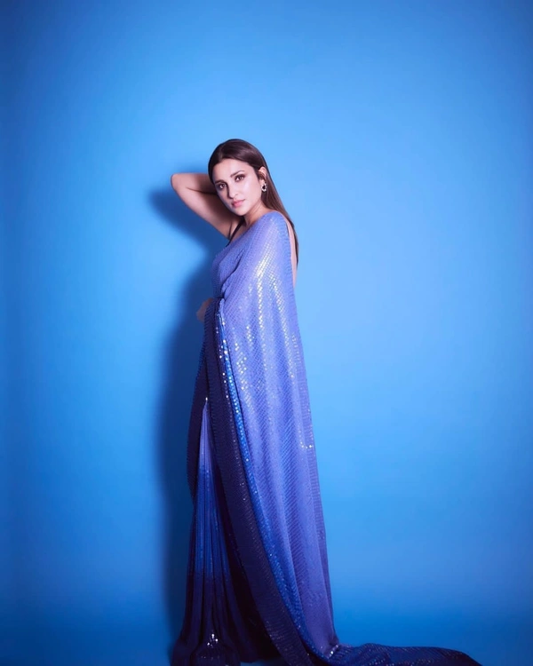 Looking some one for this same colour beautiful *Parineeti Chopra* Designer Saree on premium Gorgette fabric with Sequnce work and blouse on Benglori silk Febric .