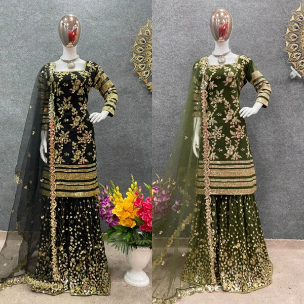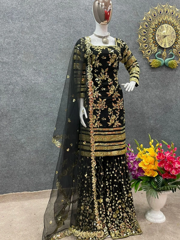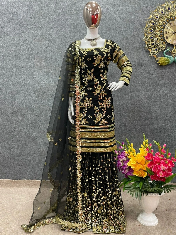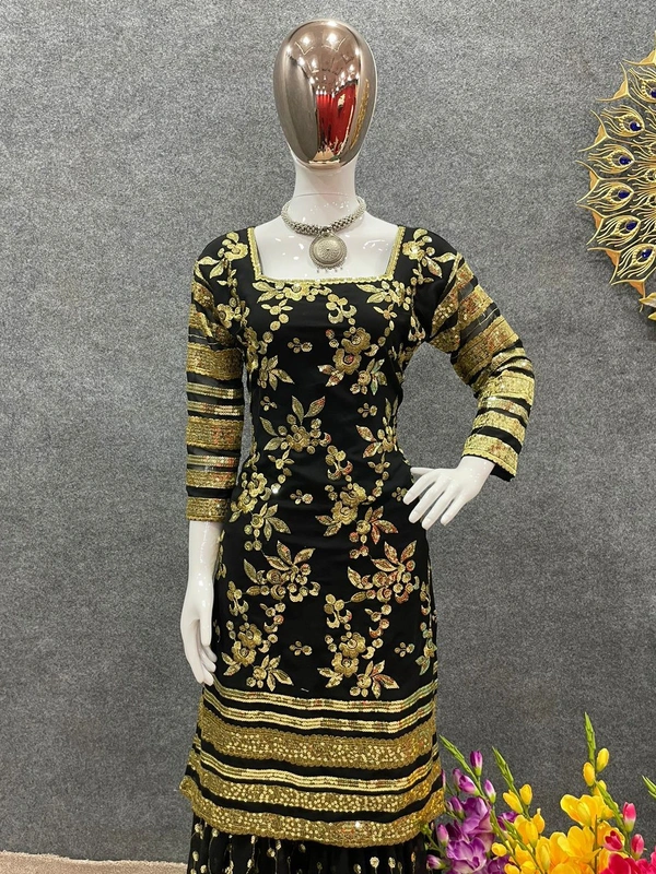 *Plazzo Fabric* : *Faux Georgette With Heavy Embroidery And 5 mm Sequence Work With Fully Flair *