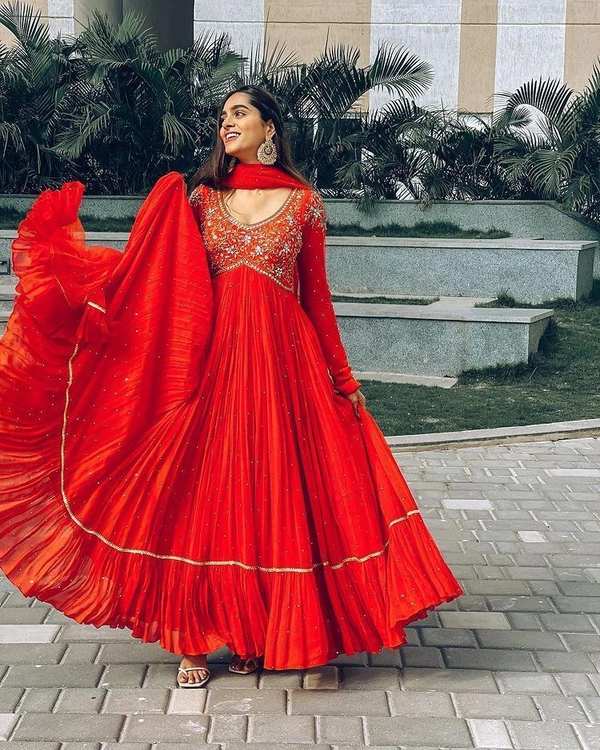 *# RATE: 1399/-+Ship* ♥️ PRESENTING NEW DESIGNER EMBROIDERED ANARKALI GOWN ♥️ ♥️ GOOD QUALITY EMBROIDERED GEORGETTE OUTFIT # FABRIC DETAILS:- 👉 GOWN :HEAVY GEORGETTE WITH FULLY EMBROIDERY(FULLY STITCHED) *WITH RUFFLE LAYER * 👉🏻 INNER : SILK 👉🏻 DUPATTA: HEAVY GEORGETTE WITH FULLY EMBROIDERY WORK & *RUFFLE STITCHING* # SIZE DETAILS: 👉 Gown Fullystitched up to 44 Size 👉🏻 Gown Length is 54 inch