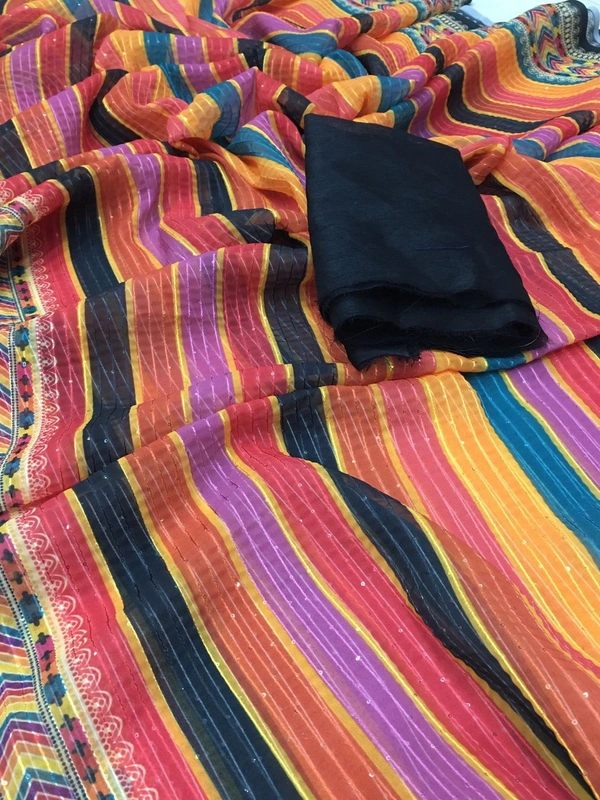 *SAREES : 5.50 MTR Saree With Digital Print And Heavy 2mm Crochet Sequence Work On All Over The Saree*