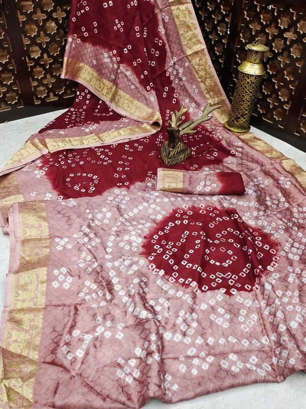 Nevertheless pairs with *Bandhej blouse with fully weaving zari Border*(image shown)