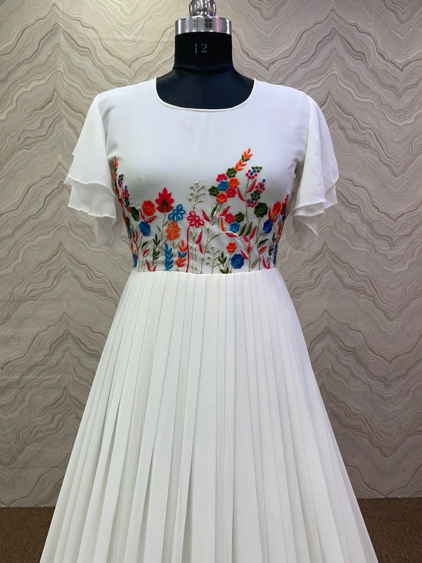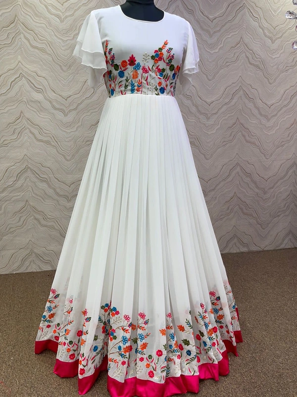*👉PRICE :- 1349/-+Ship👈* *✨ 🚨NEW COLORS ADDED🚨✨* *🧵🧶FABRIC DETAILS🧵🧶* *👗GOWN👗* 👉*FABRICE* :- Pure Georgette Silk 👉*WORK* :- Heavy Embroidery Work With Fabric Lace Border 👉*INNER* :- Micro Cotton *👗BOTTOM👗* 👉*FABRICE* :- No *👗DUPATTA 👗* 👉*FABRICE :- Heavy Fox Georgette 👉*WORK* :- Embroidery Work Lace Border With Ruffal Work *🚨BASIC DETAILS🚨* *✨Gown* :- Fully Stitched *✨Gown Length* :- 56- 58 Inc *✨Gown Flair* :- 3 MTR *✨Dupatta Length* :- 2.1 MTR *🚨🚨🚨Full Stock Ready*