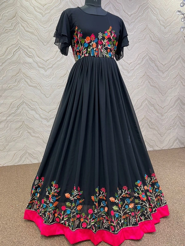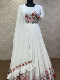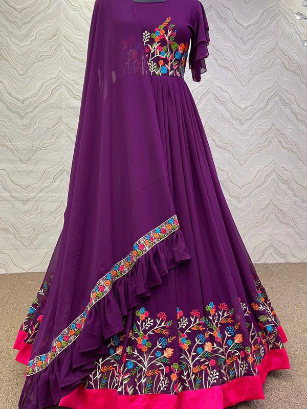 *👉PRICE :- 1349/-+Ship👈* *✨ 🚨NEW COLORS ADDED🚨✨* *🧵🧶FABRIC DETAILS🧵🧶* *👗GOWN👗* 👉*FABRICE* :- Pure Georgette Silk 👉*WORK* :- Heavy Embroidery Work With Fabric Lace Border 👉*INNER* :- Micro Cotton *👗BOTTOM👗* 👉*FABRICE* :- No *👗DUPATTA 👗* 👉*FABRICE :- Heavy Fox Georgette 👉*WORK* :- Embroidery Work Lace Border With Ruffal Work *🚨BASIC DETAILS🚨* *✨Gown* :- Fully Stitched *✨Gown Length* :- 56- 58 Inc *✨Gown Flair* :- 3 MTR *✨Dupatta Length* :- 2.1 MTR *🚨🚨🚨Full Stock Ready*