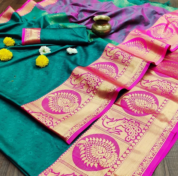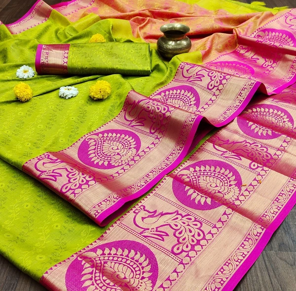 *Sarees : 5/5 MTR Saree With 0.80 MTR Blouse And Contrasts Matching Pallu With Tressal*