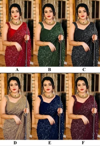 😍*Super Hit Desiner Sarees 😍* *DS NO : Vi-152* *SAREE DETAIL* *SAREE FABRIC : GEORGETTE* *SAREE WORK : FANCY SEQUNCE WORK* *SAREE SIZE : 5.50mtr* *BLOUSE FABRIC : BANGLORIY SILK(0.80 MTR)* *BLOUSE WORK : LACE SEQUNCE WORK* *TYPE : *BEAUTIFUL SAREE 6 COLOUR SEQUNCE WORK WITH BLOUSE* *No Any Less* *RATE :- 1550/-*