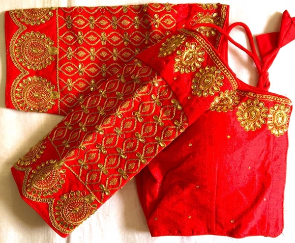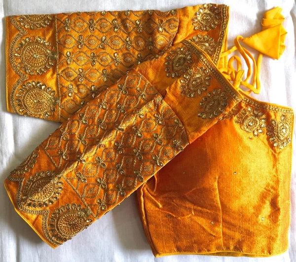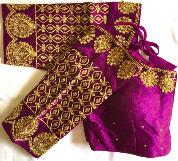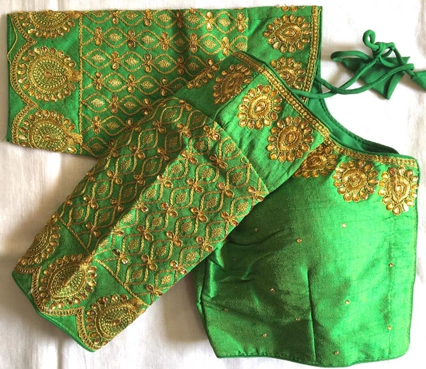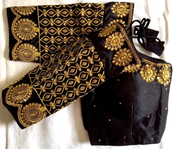 Blouse price *699/-+ship* Design BANSI Blouse has dori,coding, zari and handwork stone Blouse size making 38 Alter upto 42 Blouse material fentam silk Blouse has front open pattern